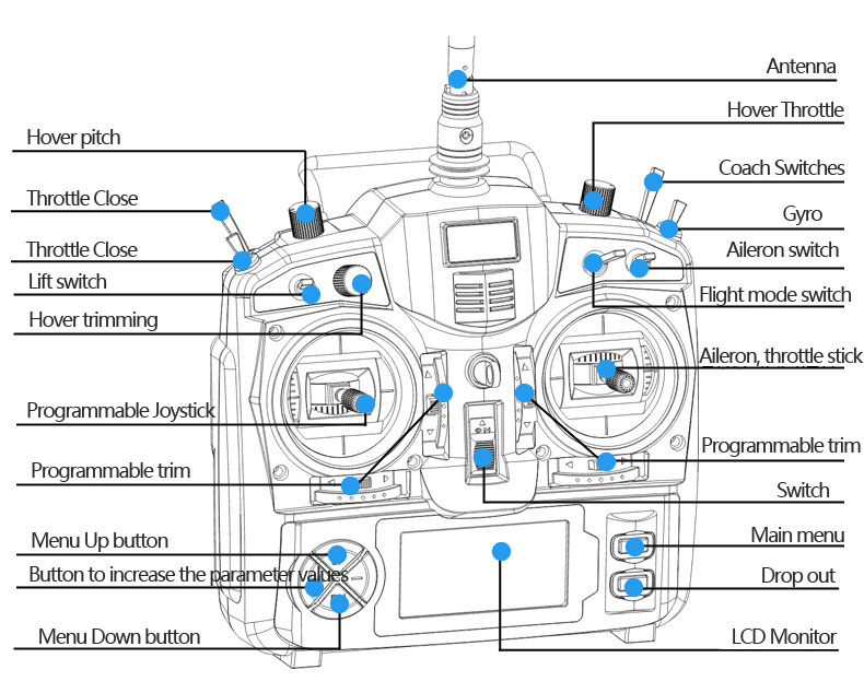 ** a Mode 2 (left hand throttle) will be given by default, you can change to Mode 1 by yourself if you need.