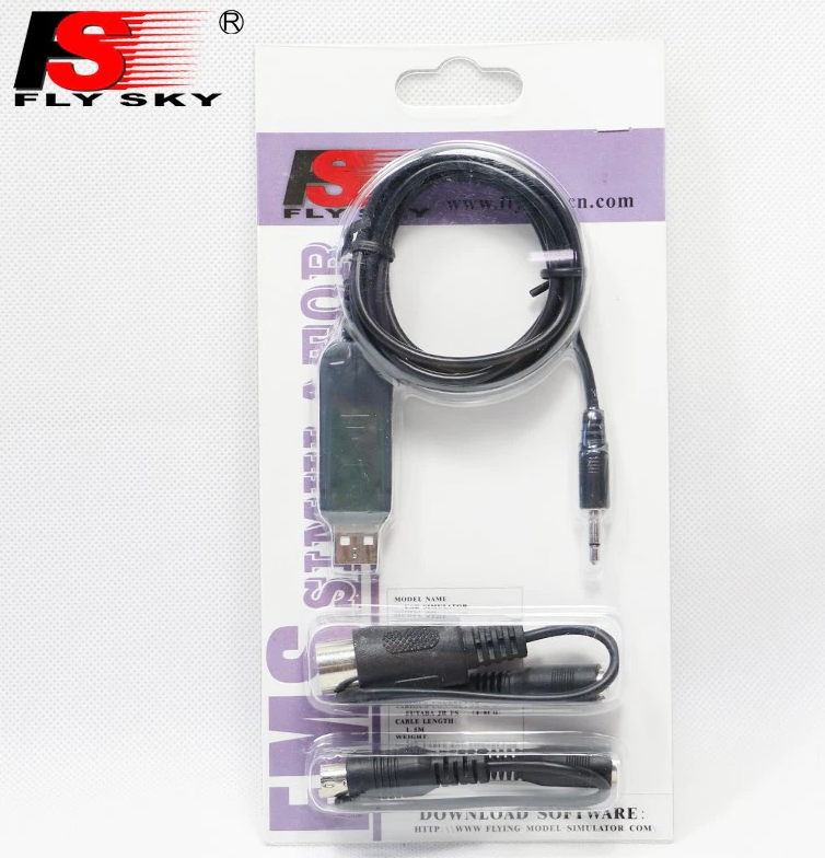 FlySky FS-SM100 simulator interface for devices such as: FlySky FS-i6X, FS-i10, FS-i6, FS-i4, FS-TH9X, FS-T6, FS-CT68, FS-T4B, FS-GT3C, FS- GT3, FS-GT2F, FS-GT2G, FS-GT3B, FS-GT2. It supports simulators such as: FMS, VRC PRO.