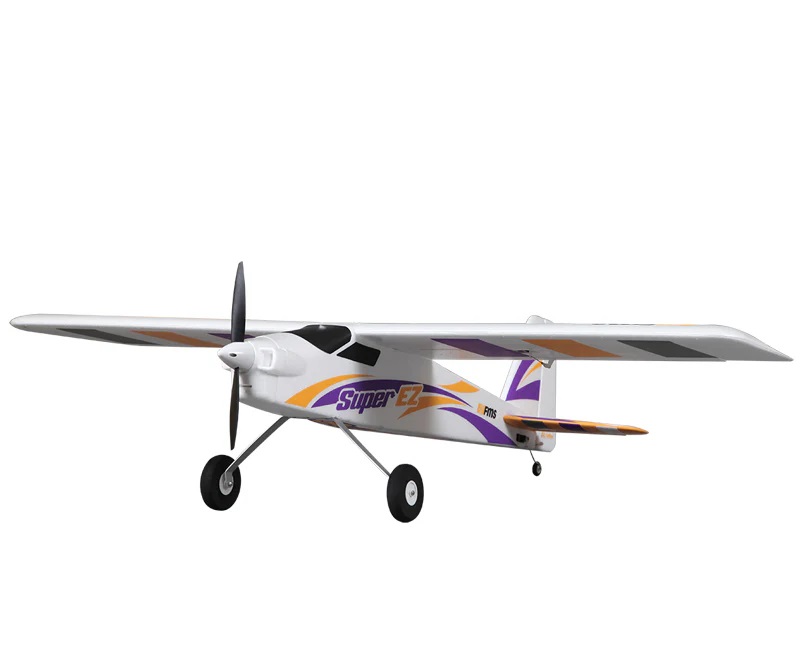 Using a large, high-winged design constructed out of lightweight EPO foam, the SuperEZ has an ultra-low wing loading and stable flight characteristics- giving beginner pilots great handling even at slow speeds. An improved brushless power system and propeller gives the aircraft ample power while still maintaining 10-15 minute flight times. A high strength, lightweight metal landing gear set absorbs even the hardest landings.