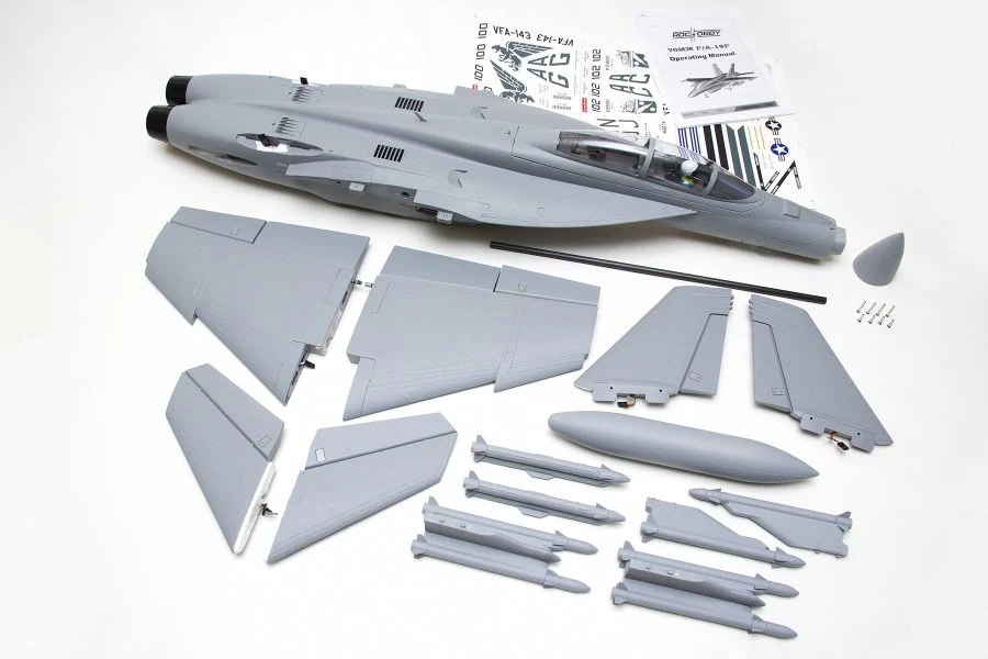 New from FMS, the new and highly detailed F/A-18F Super Hornet. The F/A-18F Super Hornet is a tandem-seat, carrier-capable, multirole fighter and attack aircraft based on the McDonnell Douglas F/A-18 Hornet. Designed and initially produced by McDonnell Douglas, the Super Hornet first flew in 1995. The Super Hornet entered service with the United States Navy in 1999, replacing the Grumman F-14 Tomcat, which was retired in 2006; the Super Hornet serves alongside the original Hornet. ROC HOBBY is proud to bring you this new and highly detailed 70mm ducted fan F/A-18F Super Hornet. Incorporating many of the new and advanced construction and assembly features such as the optimized screw based assembly, pre-installed ball links and a heavy-duty wing spar, the super hornet is quick to assemble and disassemble. Based on the original 64mm F/A-18 Hornet, the 70mm F/A-18F Super Hornet features rich details, clean lines, CNC-machined shock-absorbed landing gear sets, and a button-type canopy hatch. Included with the model are four decal sets that allows you to make your own Super Hornet and stand out in your airfield. The power system, which provides tremendous thrust and speed, utilizes our new and improved 70mm 12-blade EDF V2, 2860-KV1850 motor system. This brawny system, when coupled with a 6S battery, provides a resonating turbine engine sound. The EPO material ensures the durability. The environmentally friendly water-based paint ensures vibrant and glossy color schemes. The significant input of the basic materials makes this airplane fantastic. Go get the Super Hornet and discover for yourself this new addition to ROC HOBBY’ growing EDF fleet.