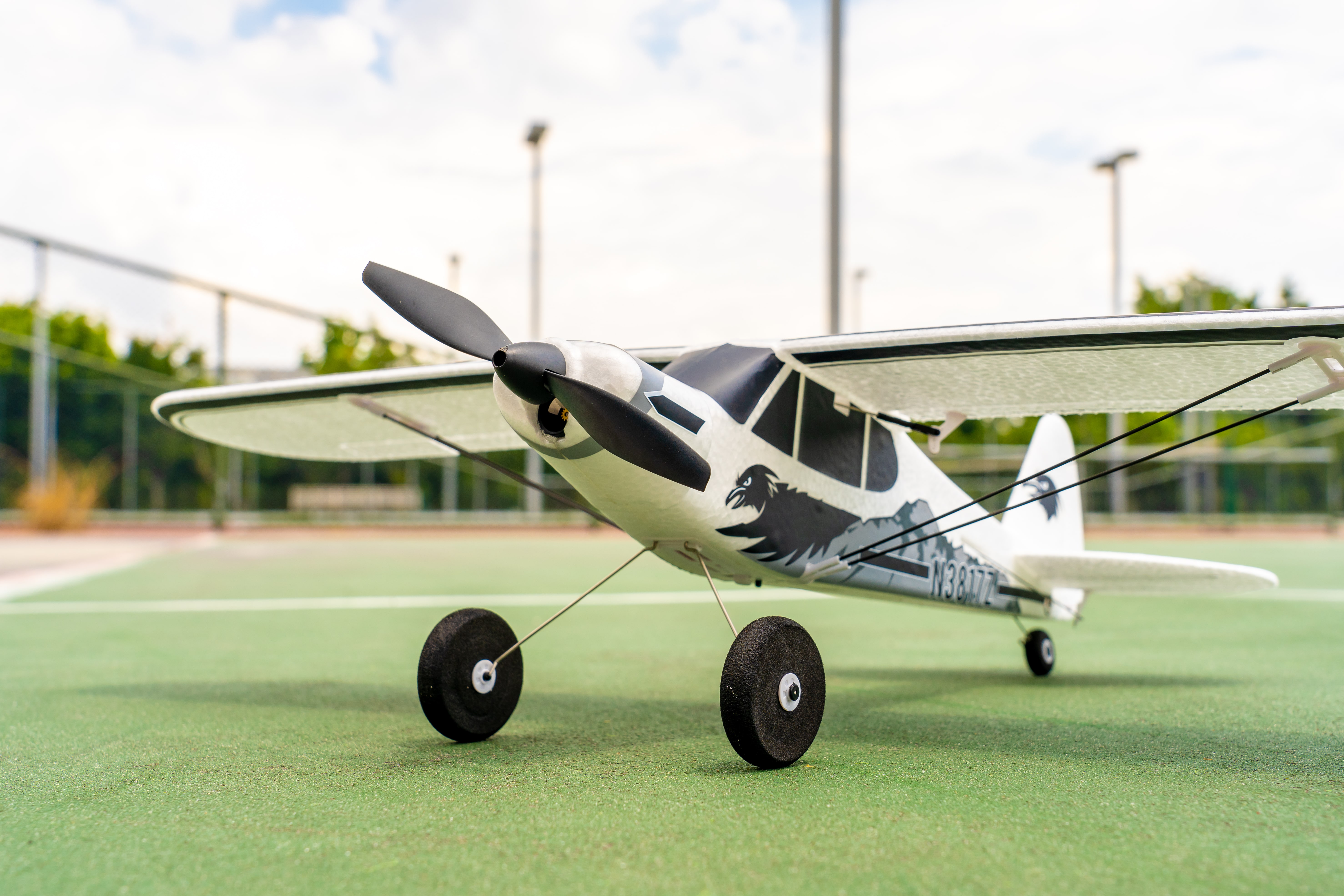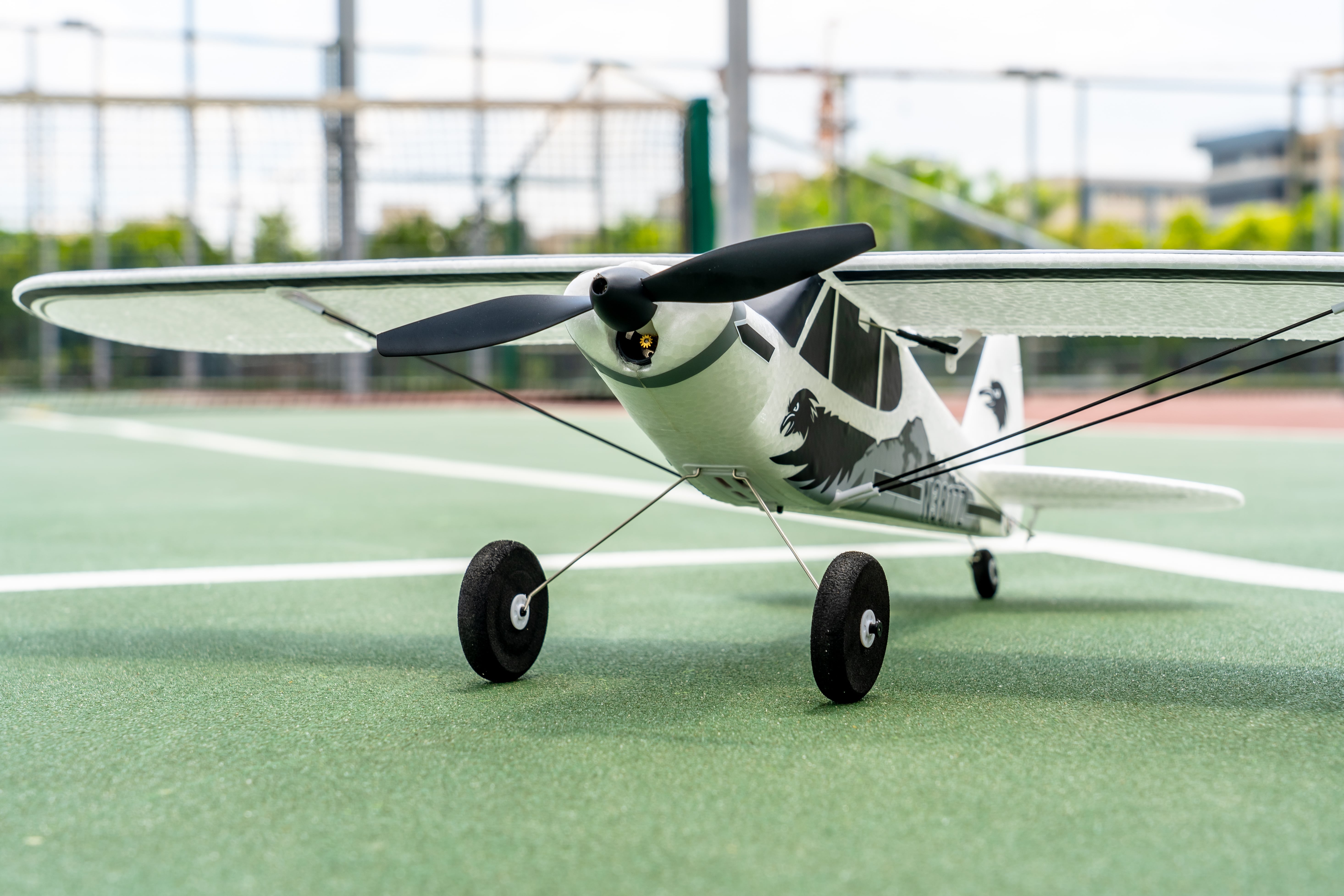 Eazy RC 540mm PA-18 product information: 1. high-speed low-loss coreless motor from well-respected supplier, system stability, reasonable aerodynamic layout. 2. Comes with a reliable flight assistance system, three modes of self-stabilization, semi-self-stability and manual to meet different needs. One-key rollover and one-key return to home, adding supreme fun and excitement to the flight. 3. Easy to control, remarkable stability, super gliding effect, can easily make somersaults, rolls and other actions. 4. The wing adopts snap-fit structure(easy to carry), which can be installed by pressing and detached by pulling. 5. The flexible nylon propeller features with excellent dynamic balance. Its crash-off design (self-releasing when hitting the ground) protect it from hard landing. 6. EPP foam material, light-weight, anti-corrosive, and paintable, with total weight of 70g. 7. Carbon fiber reinforced struts can effectively resist torsion of the wing and increase the strength of the airframe. 8. The remote control radius is up to 100 meters, with stable and anti-interferenced signal. 9. No need for a professional flying field. Park / basketball court/or even front or back yards would be fine. 10. RTF version available."