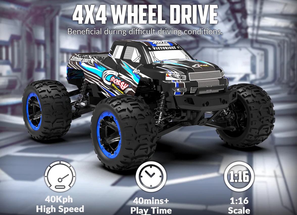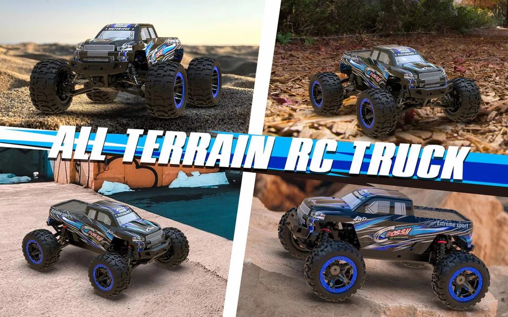 【4 WHEEL DRIVE RC CAR】- This Cross-Country rc truck 4x4 designed with 4 weel-drive system allows the truck to conquer diferent awful environment easily and provide you the realistic racing and off-road game experience. Heavy duty tires and wheels to provide high speed and stable running performance.