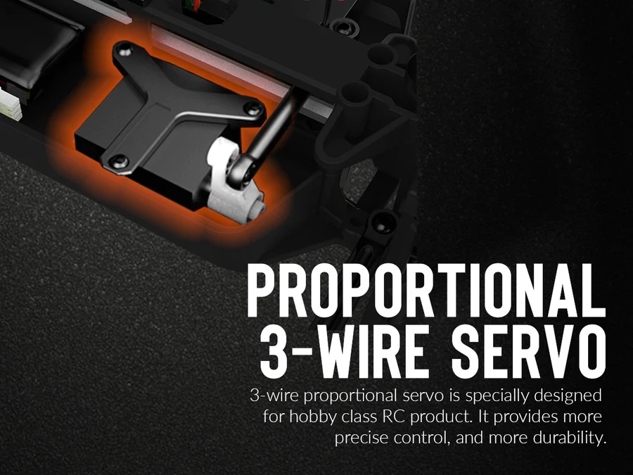| Radio | 2.4GHz FHSS pistol radio system |