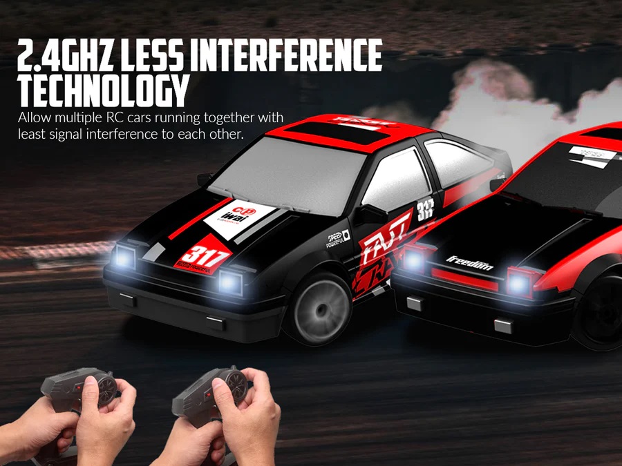 LED Light & Longer Playing Time-Our drift RC car features an LED light for night time racing. It includes 2 rechargeable batteries, ensuring longer playtime and endless fun.
