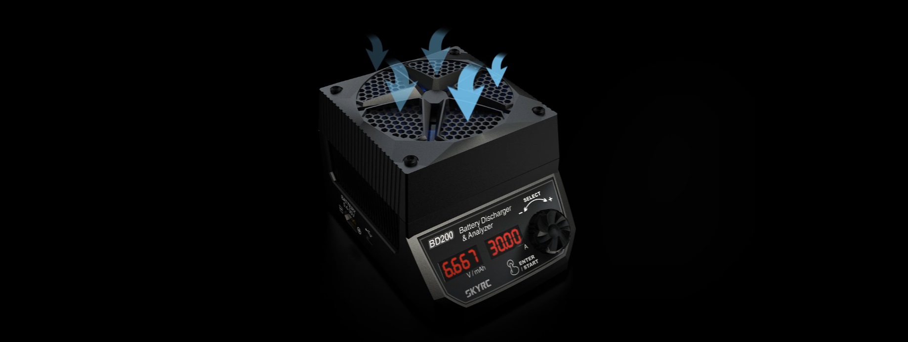 To prolong the health of RC batteries, you need to balance charge them correctly and discharge them properly too. That means not leaving unused batteries fully charged, but discharging them to their storage voltage. That is where this device comes in handy. The BD200 is powerful battery discharging device. While most good battery chargers have a discharge function, they are more suited to charging batteries so their discharge rates tend to be just a couple of amps at best; anymore and they would overheat. If you are using high capacity, high voltage batteries this means discharging can take forever. Not so with the BD200, with its mighty cooling fan it can discharge a battery at up to 30 amps or 200 watts continuously, saving you time and not putting stress on the electronics of your charger. Now you have no excuse for not storage charging your LiPo battieries!