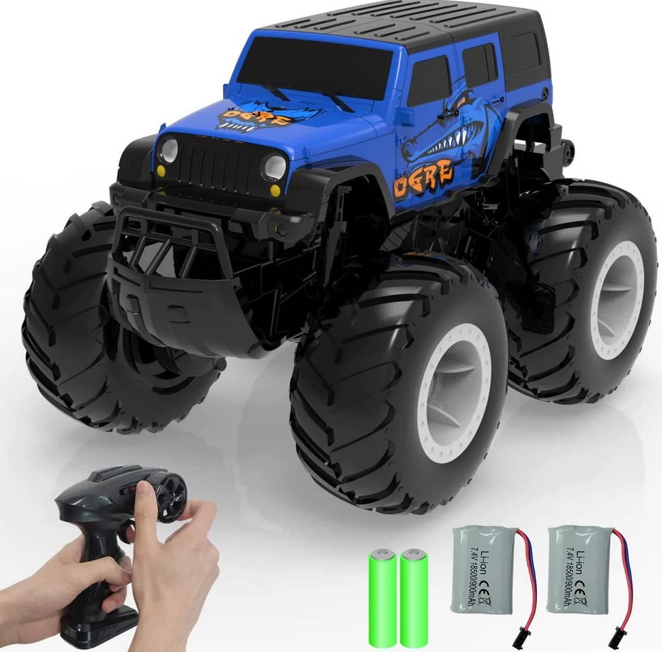 【Amazing Amphibious RC CAR for All Terrain】- This amphibious remote control car can do double-sided running, front & back flips, 360 degree spins on the water and ground. The 4wd off-road design supports this RC cars to easily break through the land, sand, muddy, grass, snow and beach! Not only be a all terrain rc monster truck, also be a cool remote control boat for pool and lake toys, to surf it in river, pond or other water surface.
