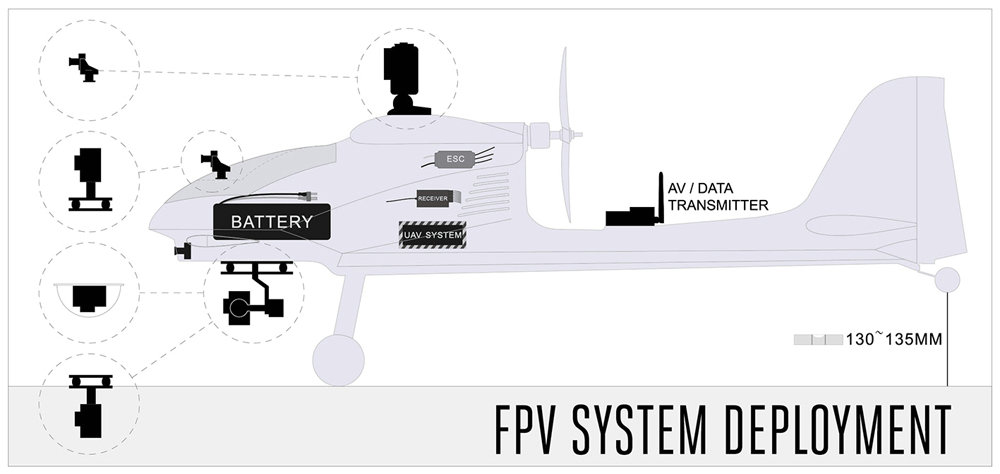 Special design and optimize for long range FPV, so there is a lot of space for mounting systems and different Camera mounting way, which not require any modify.