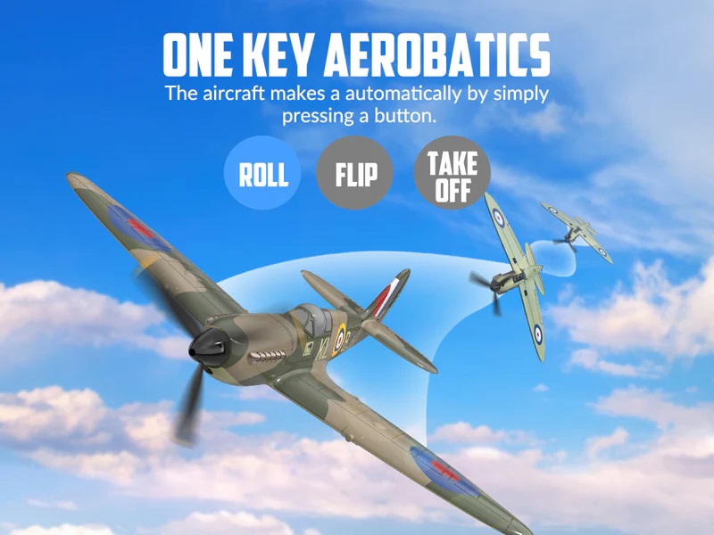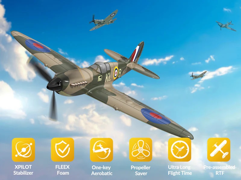 The VolantexRC Spitfire with gyro is one of the best RC airplanes for beginner kids and adults. It comes with aileron, great sport performance, with one key aerobatic, 6-axis gyro, one key return, durable EPP material, propeller saver.