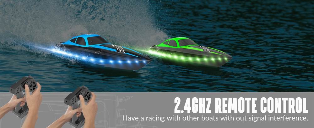 【HIGH SPEED RC TOYBOAT WITH LIGHTS】VOLANTEXRC rc toyboat for kids and adults race across the water up to 20MPH, this high speed rc boat equipped with a 2.4GHz remote controller with a 120-meter signal range, led lights make it be attractive in darkness. 【SUPER EASY TO LEARN AND CONTROL】The rc boat gift toy goes fast and responds well. 2 directions (forward, backward) controlled by throttle trigger and 2 directions (left, right) by the steering wheel. The 2.4Ghz radio controller of remote control boat is easy to hold and learn. 【FAST RC ELECTRIC BOATS FOR KIDS AND ADULTS】Remote control boat characterizes the durable anti-flip hull design and self-righting auto roll back feature. The reverse-functional ESC will keep you out of trouble from any block, simply reverse it back to route. 【GREAT RC BOAT FOR FUN】The rc watercraft will slow down while its battery power drops to low voltage, remainding you to retrieve a it back immediately. Safety features to protect the battery and the boat from over-charge and over-discharge of the battery. 【WONDERFUL GIFTS FOR BOY AND GIRL】The VOLANTEXRC Vector high-speed rc boat is easy and fun to play, and it's one of the hardest and fastest freshwater remote control boat for adults and kids, for birthdays, anniversaries, farewell, best wishes, Halloween, Thanksgiving, Christmas, New Year's!