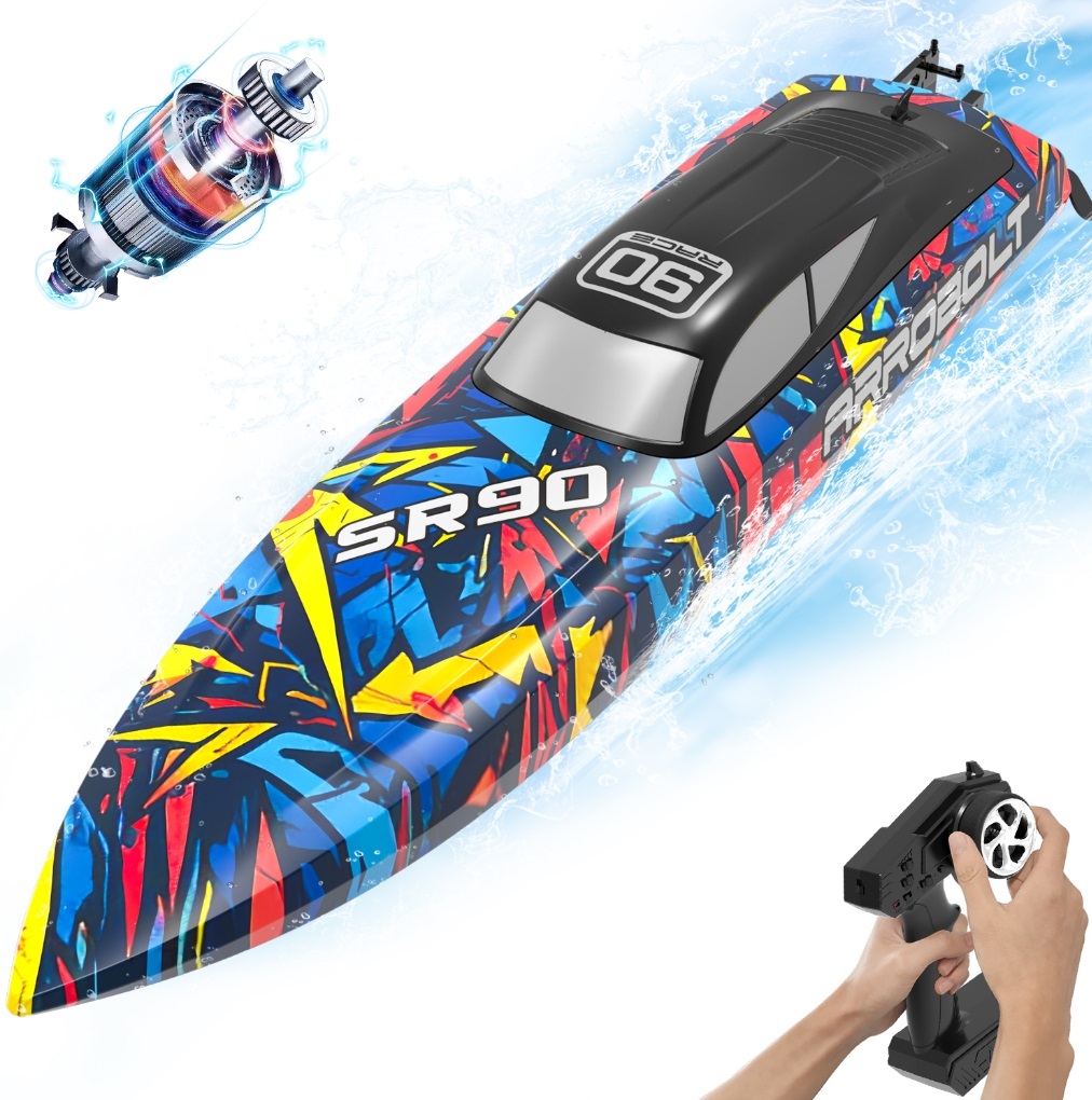 Volantexrc RC Vector SR90 boat is designed with self-reverse function and excellent power system, the maximum speed is 70km/h. Vector SR90 is easy to operate, good for beginners, children and adults. The streamlined hull design provides excellent performance. Special one-piece ABS hull, strong structure and crack resistance, prevent the boat from being damaged when hitting at high speed, it is a ship that can accompany you for a long time.